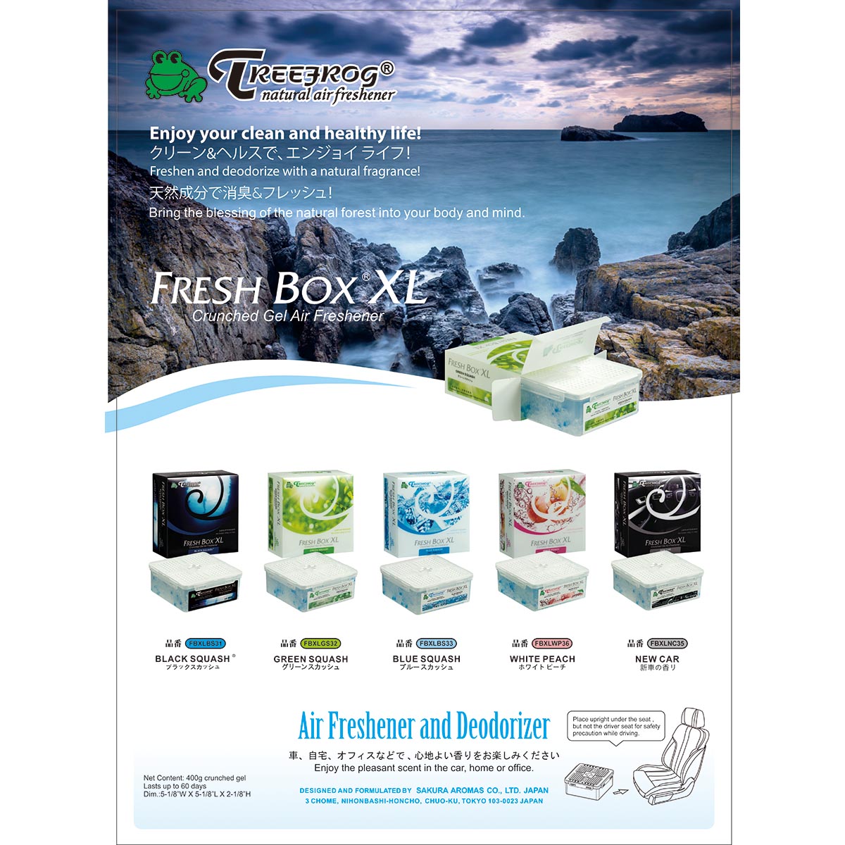 TREEFROG FRESH BOX XL NATURAL AIR FRESHENER - Bring the blessings of the natural forest into your body and mind with natural air fresheners from Treefrog. Treefrog Fresh Box XL - a full-size natural air fresheners with net content of 400g (14.11 oz), enough to freshen any size car or a full-size SUV, boat, or even a small room!